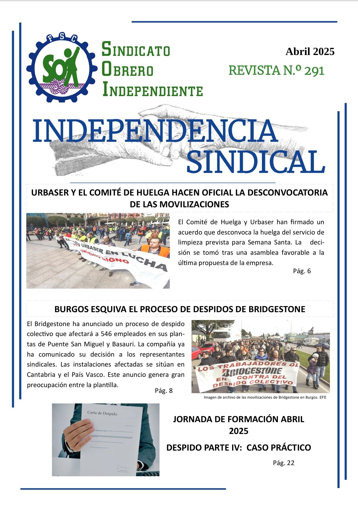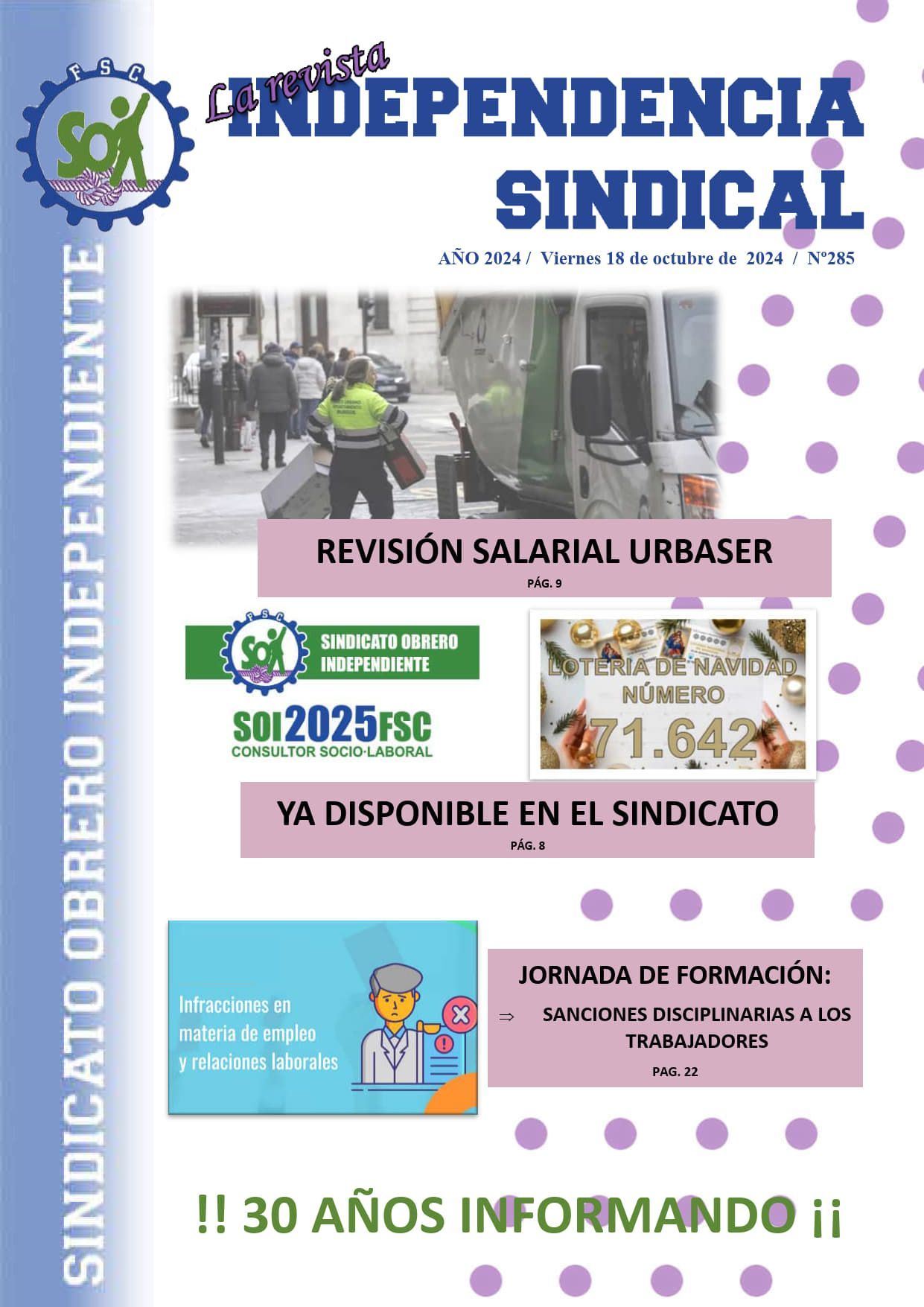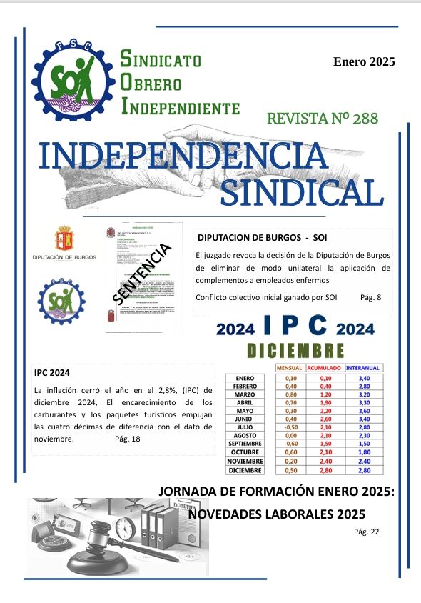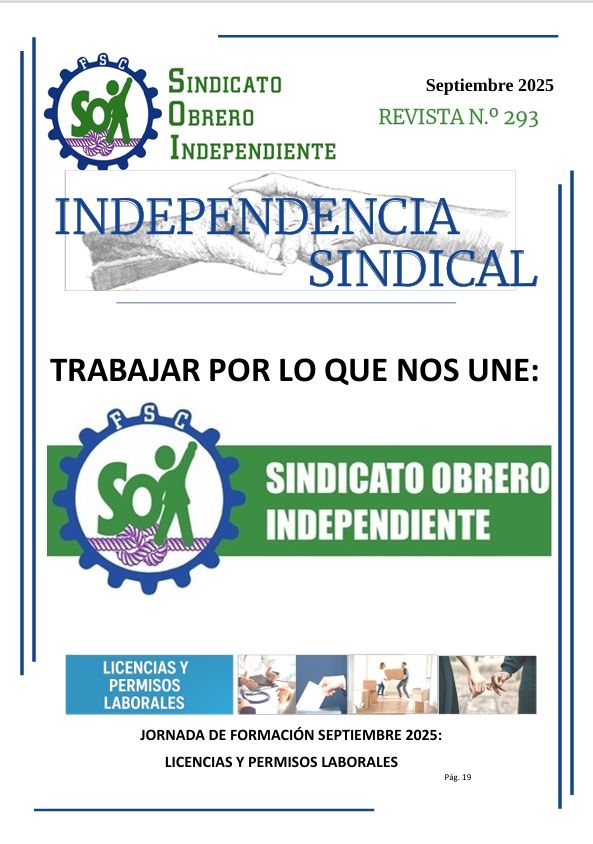 Mensualmente el Sindicato Obrero Independiente recopila y difunde todo tipo de noticias, formación e información sobre temas laborales en su revista INDEPENDENCIA SINDICAL donde puedes encontrar artículos relacionados con las siguientes temáticas: