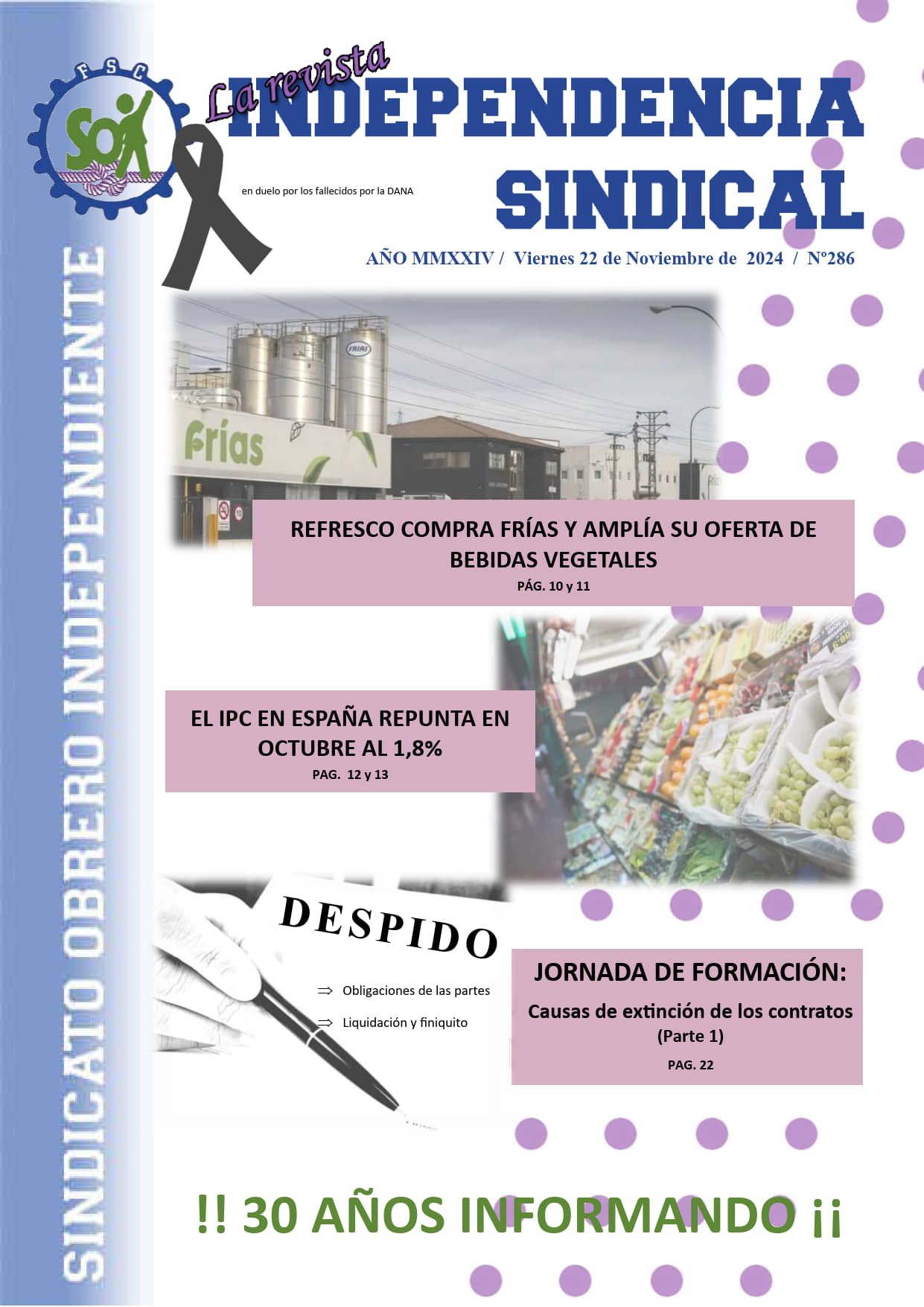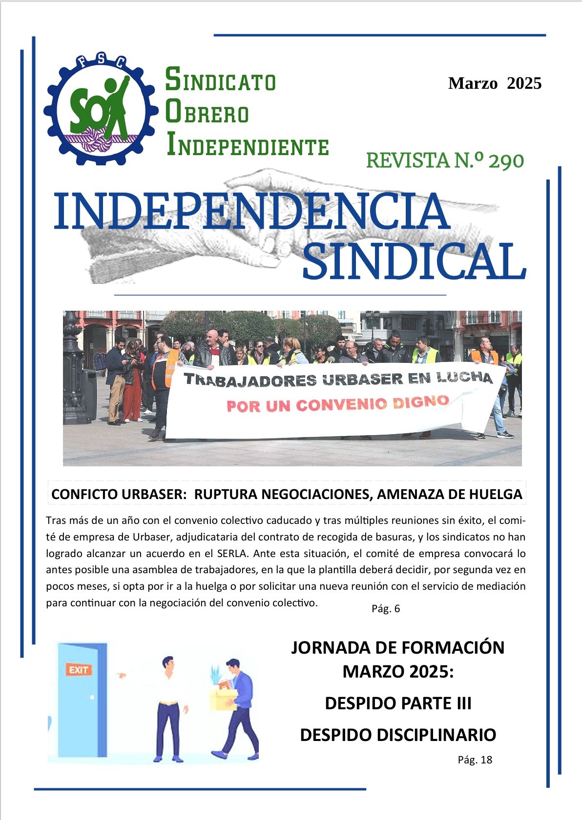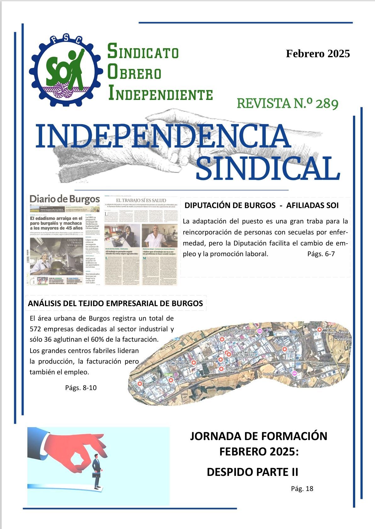 Mensualmente el Sindicato Obrero Independiente recopila y difunde todo tipo de noticias, formación e información sobre temas laborales en su revista INDEPENDENCIA SINDICAL donde puedes encontrar artículos relacionados con las siguientes temáticas:
