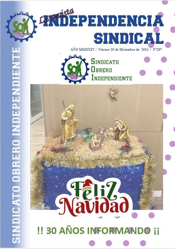 Mensualmente el Sindicato Obrero Independiente recopila y difunde todo tipo de noticias, formación e información sobre temas laborales en su revista INDEPENDENCIA SINDICAL donde puedes encontrar artículos relacionados con las siguientes temáticas: